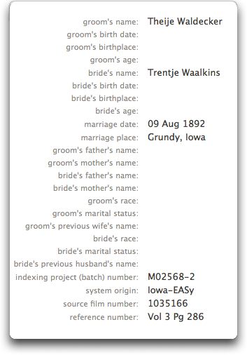 7. There are no marriage records for Trientje Waalkens, which confirms our information, that she was married in the U.S.