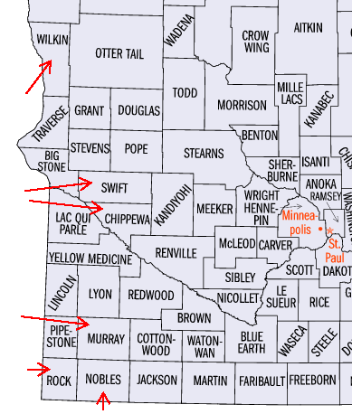 Fred (son of Tom and Kate) was born in Ellsworth, MN., Rock County. Actually, Ellsworth is in Nobles county, but he may have been born in a hospital in Luverne, which is in Rock county. Ellsworth is Southeast of Luverne, practically on the border with Iowa. It is also Southeast of Kanaranzi. See map below.