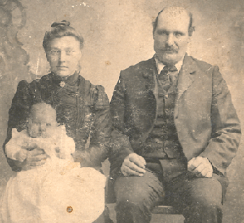 3. One sister was Rena. Rena was born in Germany in 1880. I have a note that makes me think her birthday was March 15th. Lorraine says she did housework for a Jewish family in Germany. As I understand it from Lorraine, the government assigned jobs, and you couldn’t change jobs. Rena came to the States in 1901, along with her parents, but according to Lorraine this was the second time (see above). She was 21. She married Siebe Wilts in 1901. Siebe was born in Illinois probably around 1869, but his parents were born in Germany. Audrey says his name is pronounced “see-ba” in German but Harland Wilts says they pronounced it “seeb”. I think it was Lorraine who said “see-bee”. Siebe was living in Lyon county, Iowa, at the time of the 1895 Iowa census. Here is a picture of the two of them, probably with their son Fred. The Wilts lived in Ellsworth, MN for a while. The 1910 census has them living in Nobles county, MN. Then they moved to Campbell, where they got flooded out and lost the farm. Then they moved to Murdock. They lived near Murdock, MN (Swift County or Chippewa county), at the time of the 1930 census. At some point Siebe wanted to go to South Dakota, but Rena didn’t want to go. I have a note from somewhere that Frederick and Gerdina were housekeepers for Siebe Wilts. Siebe built a house for them on his property. Their children were: Fred (1902), Dena (1904) Toni (1906), William who went by Bill (1908), Minard who was also called Mike (1910) Siebe (1912), Grace (1914), Viola (1916), Lorraine (1919), Leona (1922). This order and these dates were given to me by Lorraine. Leona lives in Washington State and her last name is McGinty. Dena married Henry Wellbrook. Their children are: Richard, Delores, Delmar, Marvin and Ivrin. I think Delores was still alive when I got this info three years ago. Bill had three children: Harland (Nov 18, 1938), Joann (Dec 18, 1945 or 1946), and Karen A. Hudson (April 30, 1947?).