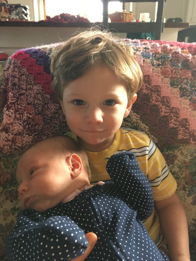 Here is the story: First of all, we were praying for a shorter labor this time around. Secondly, we were told that we were having a boy. 😀 I started feeling stronger contractions around 11 pm, and told my parents (and Allen, of course) that I wondered if the baby was coming. We had already planned on a home birth, so we texted the midwife. She told me to drink some water and a glass of wine and try to sleep! First off, I don’t do well with wine. I tried the water and tried to sleep, but we had to tell her that the contractions were too strong to be able to sleep. So she said to time the contractions. Meanwhile, they got stronger. We told my parents to go ahead and enact our plan for Ezekiel, to take him to Seth’s house. We told the midwife that the contractions were very strong (I was yelling fairly loudly–which can really help! 😀 ). She said she would come soon. Then Allen said, “Audrey! It’s a head!” And a minute or so later, Allen had delivered the baby! God answered our prayers! Labor and delivery was less than three hours!!! And Allen got to catch our baby, which he had wanted to do! After holding our baby for a bit, I gave the baby to Allen and suddenly I said, “Allen, it’s a girl!” What a pleasant surprise! 20 minutes later, the midwife came. Haha! She said, “Next time, I’ll come right away!”