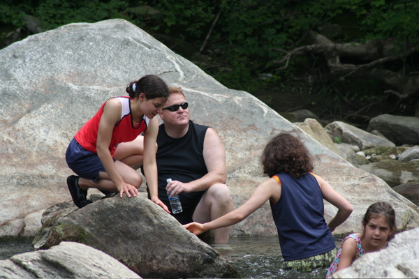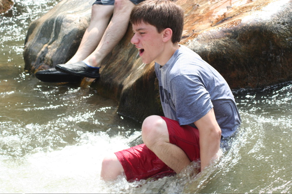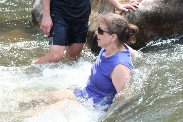 I am glad we decided to come to this stream. Frolicking on the rocks (and falling on them) and careening down waterfalls was so much more fun than swimming in the pool. I had so much fun!