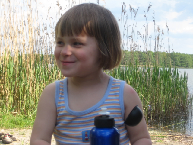 This is Linnea, the youngest of the Heymann family. She is, as you can see, very michevious. This is when we were on the lake at the retreat.