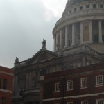 This morning we took the tube to St. Paul’s, where we saw St. Paul’s Cathedral, the only cathedral to portray the vision of but one architect and to be completed during his lifetime. Christopher Wren’s cathedral at St. Paul’s displays that same glory and beauty displayed by Westminster Abbey, though it does not follow the Gothic tradition. The inside was just as magnificent as the outside, and we were able to climb to the top of St. Paul’s (434 steps), where we witnessed a remarkable view of London. Next, we walked over Millennium Bridge to see the outside of the reconstructed Globe Theatre, where most of Shakespeare’s plays would have been performed.
