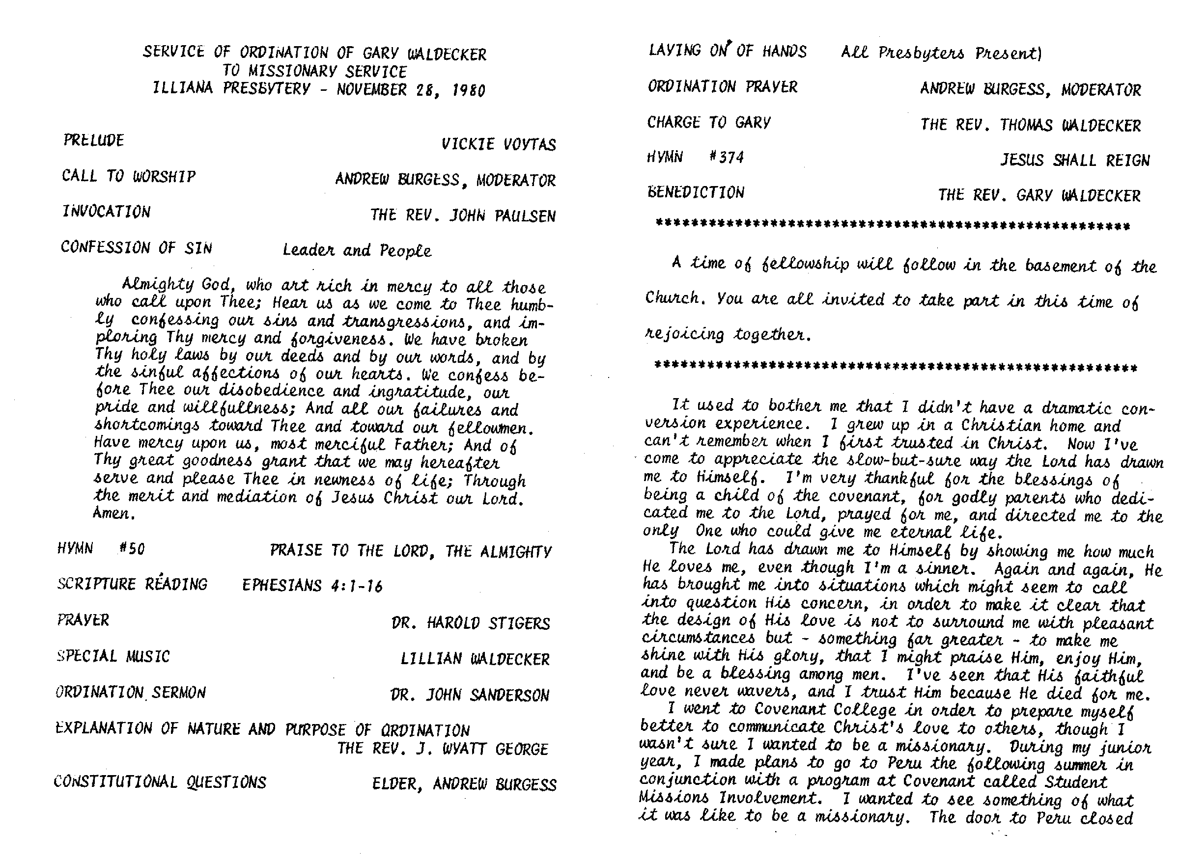 I found this program for my ordination service. Click on them to see full size. Use the “Back” button on your browser to return to the post.