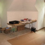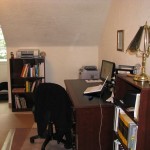 Row 1, My upstairs office (L-R): Closet, my work table, my desk and book shelves