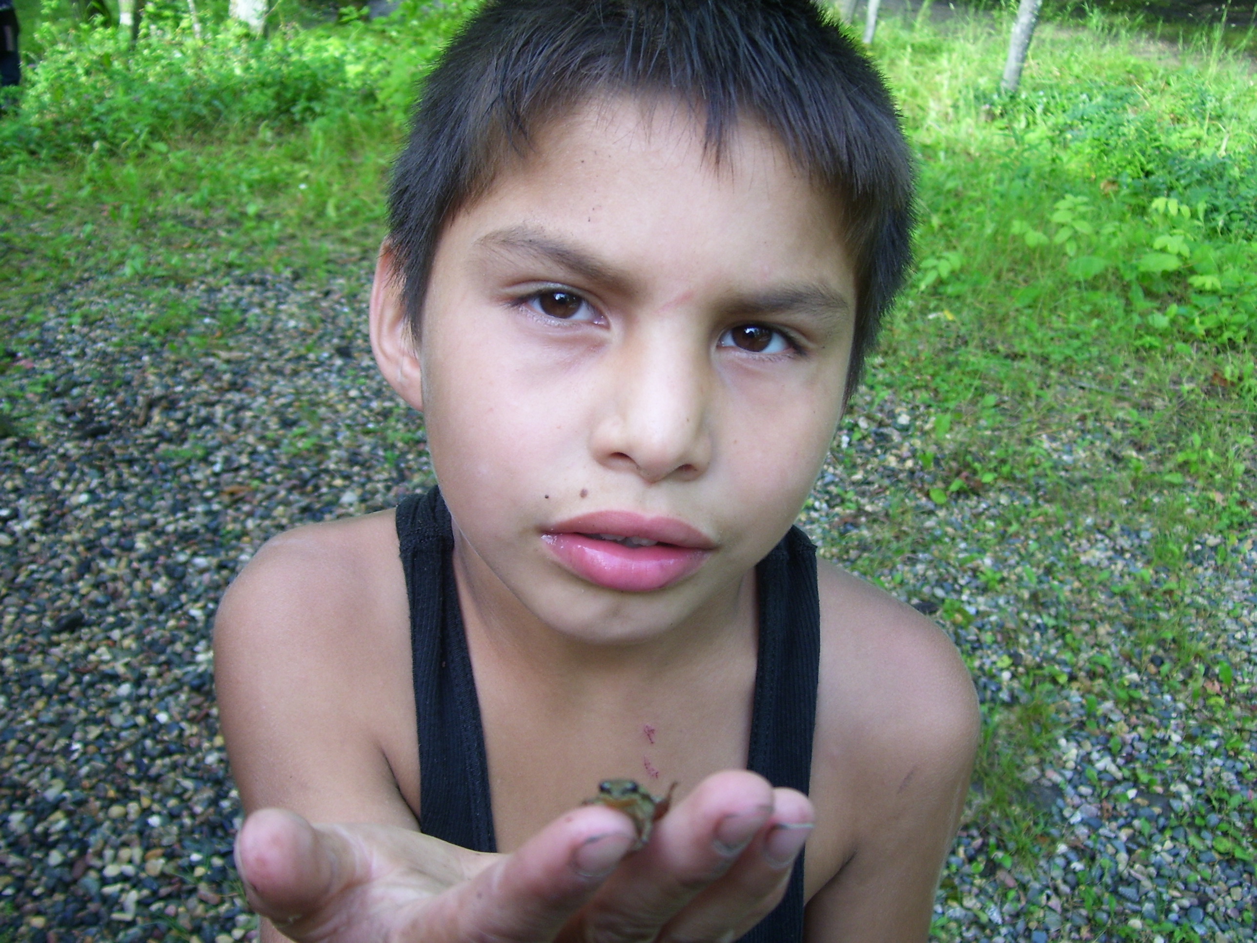The boys were obssessed with frog hunting. Almost every time they were outside they were looking for frogs ( or toads ). When they found one they would put it in their pocket and occasionaly take it out to play with it. By the end of the day most of them would be dead.