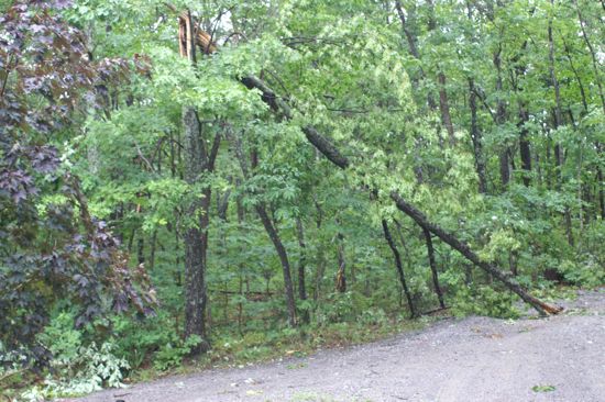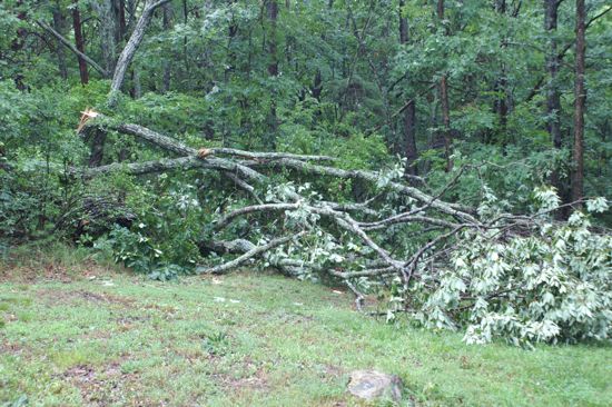 This tree fell across our driveway. This picture shows what it looked like after I cut away the branches enough to get out with a vehicle
