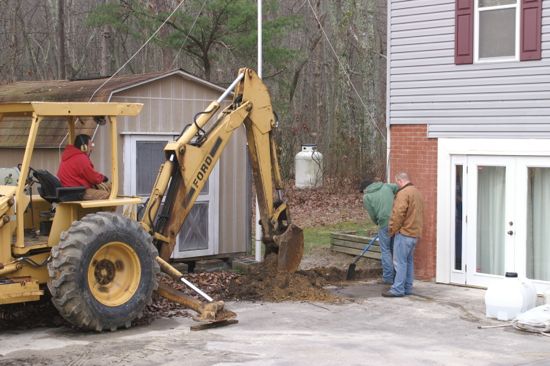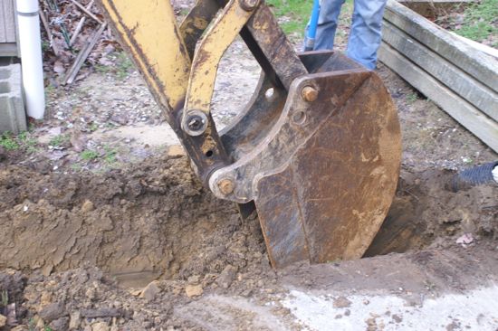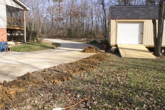 I had the trench dug this week to lay the electrical wires between the house and the workshop. The “Call-before-you-dig” people have come twice to our house to mark where the electrical lines and such are located. As it turns out, they got it wrong both times. When we were digging the trench we found electrical cables. I assumed they were old and not being used since the live wires were supposedly somewhere else. But I had the electric company come out to look at it, and they surprised me by saying these were live. Thankfully the person I hired used a backhoe instead of a trencher or he would have cut right through it. Thankfully also he was experienced enough to sense the cable and back off. I had the electric company check it out to make sure there was no damage.