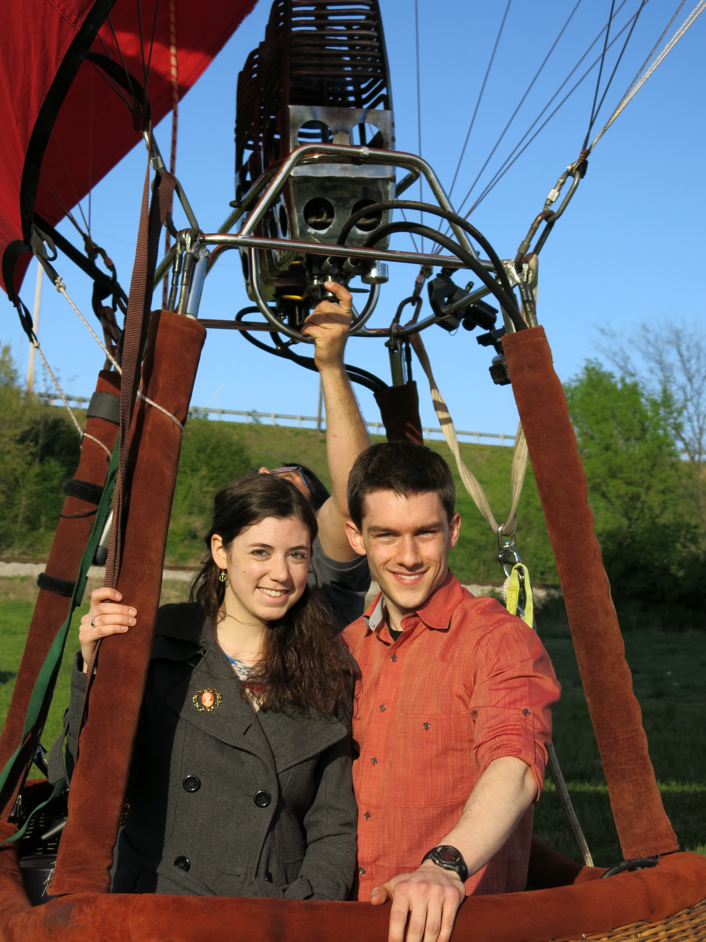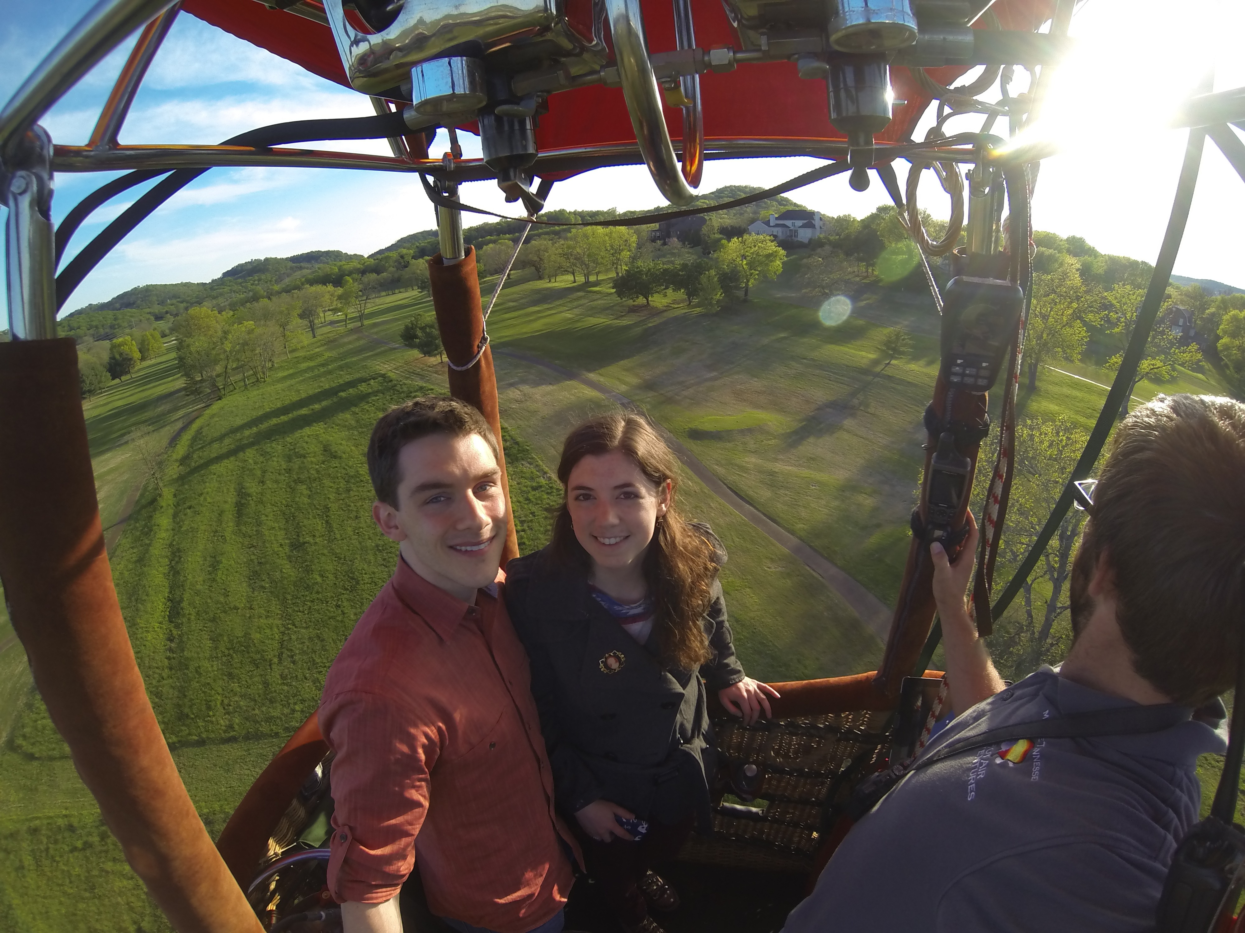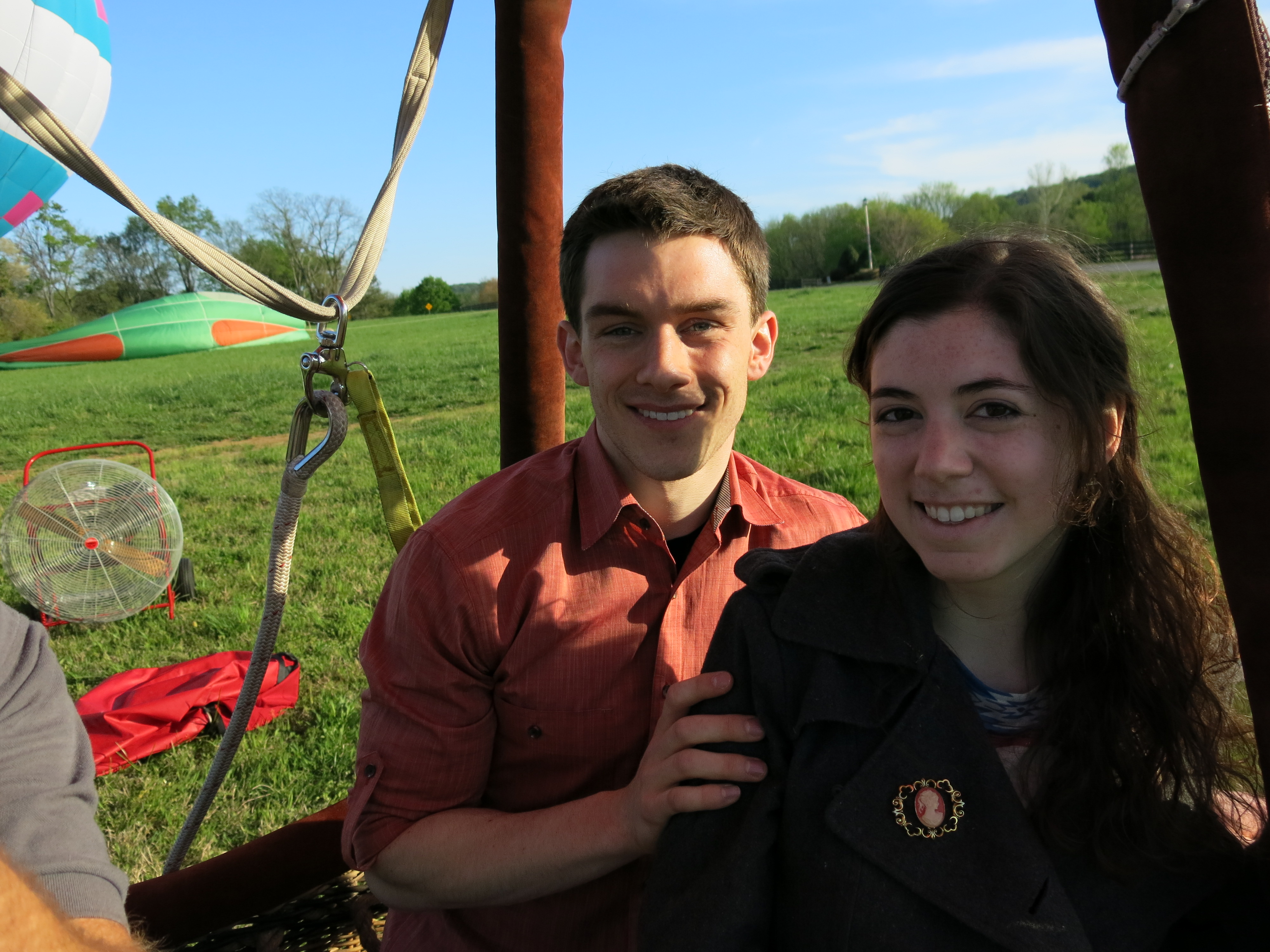 I wanted to announce to the family that Becca Wolfe and I are officially engaged! I took her out Sunday to celebrate our 1-year anniversary: we went to a restaurant in downtown Franklin where we had our first date, then I surprised her with a hot air balloon ride for just the two of us, and finally, later that evening, I proposed to my best friend in the world–and she said yes! We haven’t decided on a date yet, but I think we’re looking at sometime in the summer of 2014. I’m posting pictures of the hot air balloon ride and, of course, the ring. Enjoy!