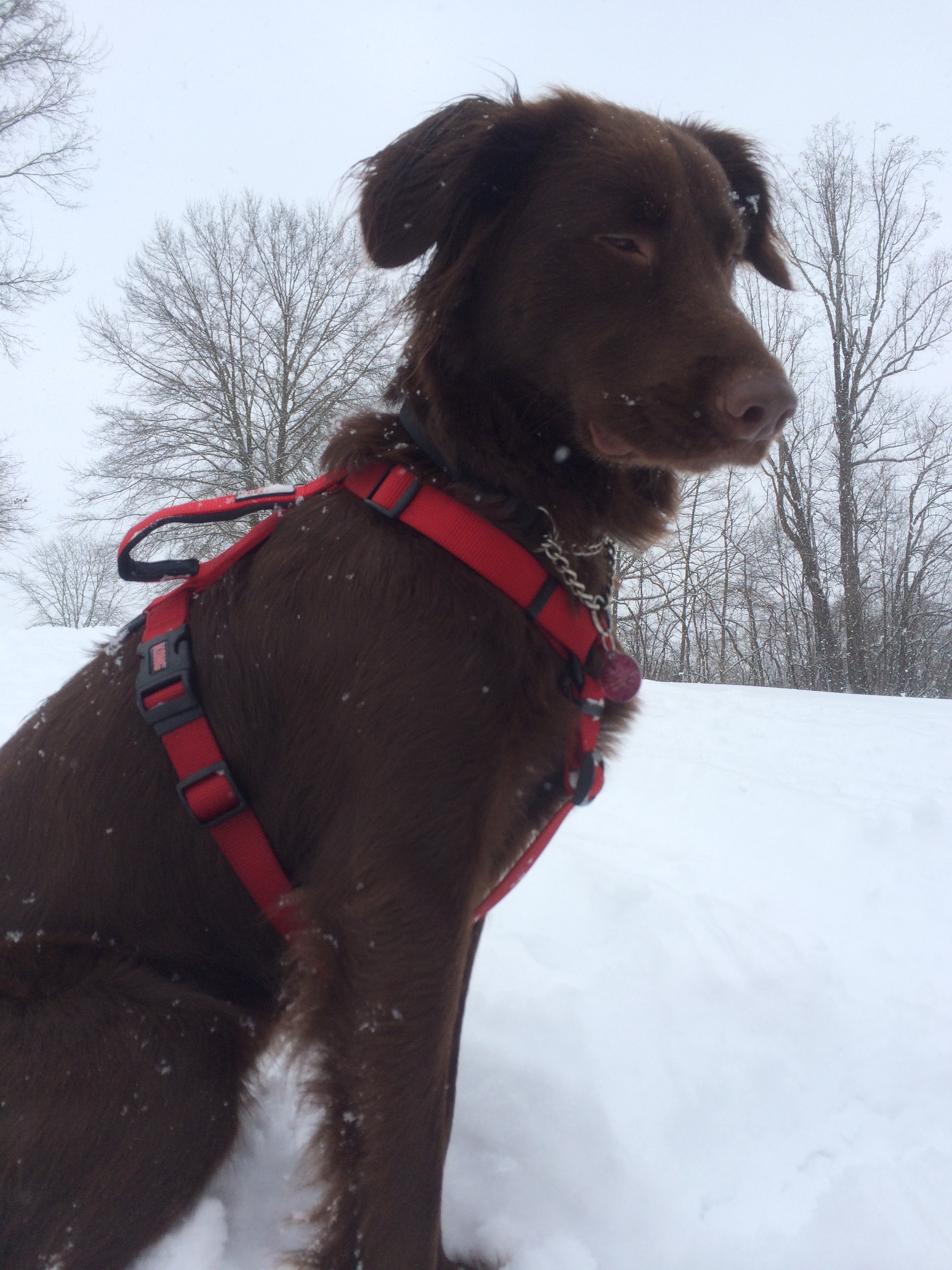 It snowed here all day until around 4. Beautiful big flakes (unlike all the wind last night). We probably picked up another 2″ today.