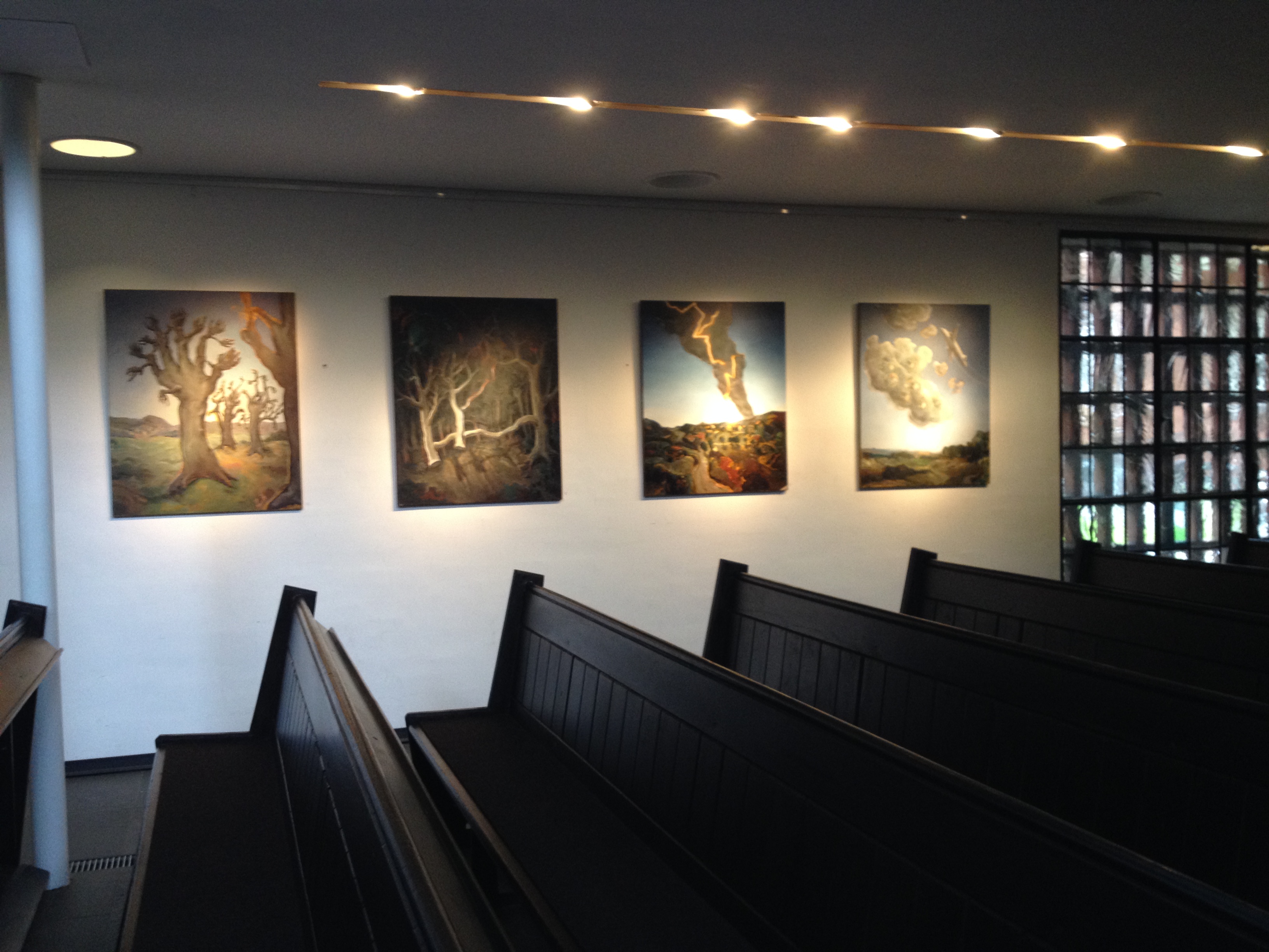 I did not understand these interesting paintings in the church. The one on the far right is of a plan and a bunch of houses catastrophically stuck in the clouds.
